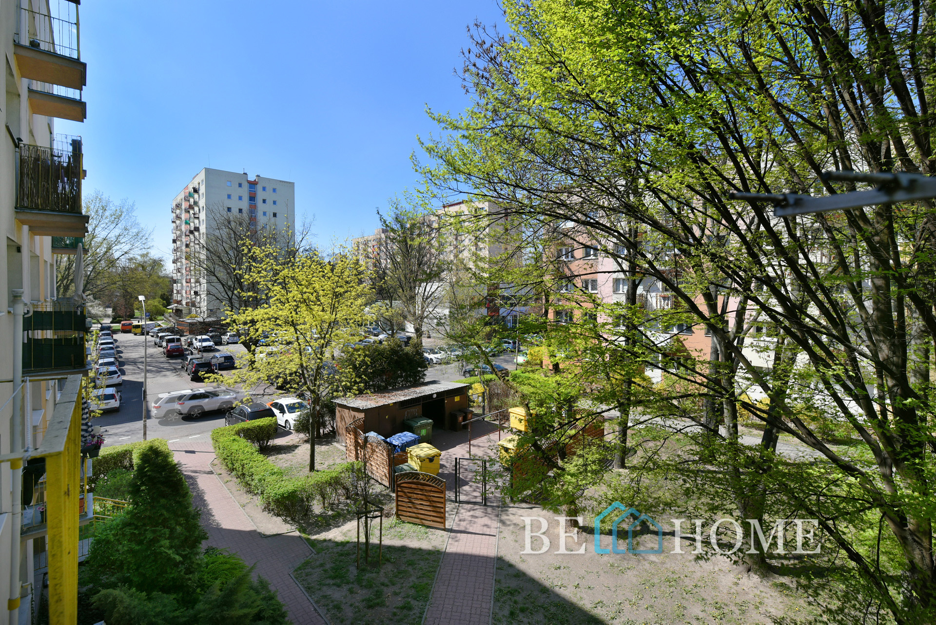 Kuchnia w zabudowie, wyposażona została we wszystkie niezbędne sprzęty AGD (lodówka/zamrażarka, piekarnik z płytą elektryczną). Bezpośrednio z salonu wyjdziemy na balkon z widokiem na spokojny, zielony, wewnętrzny dziedziniec.